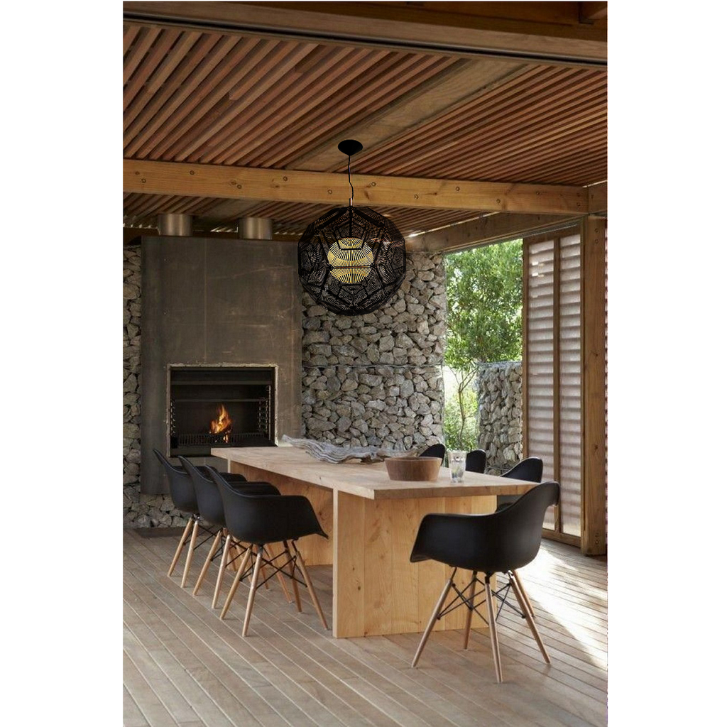 Un núcleo de luz se envuelve en una esfera pentagonal creando una insólita vista para complementar el diseño excepcional de un espacio moderno y extravagante.